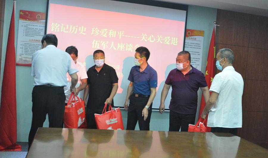 29日2021-077月28日上午,在建軍節到來(lái)之際,天津安達集團股份有限公司、東麗區慈善協(xié)會(huì )共同組織我區困難退役軍人召開(kāi)“銘記歷史 珍愛(ài)和平—關(guān)心關(guān)愛(ài)退伍軍人座談會(huì )”。天津安達集團股份有限公司黨委書(shū)記董事長(cháng)、區慈善協(xié)會(huì )副會(huì )長(cháng)崔洪金,區退役軍人事務(wù)局調研員暴國正,區慈善協(xié)會(huì )副會(huì )長(cháng)丁純志及11名困難退役軍人代表...[查看詳情]